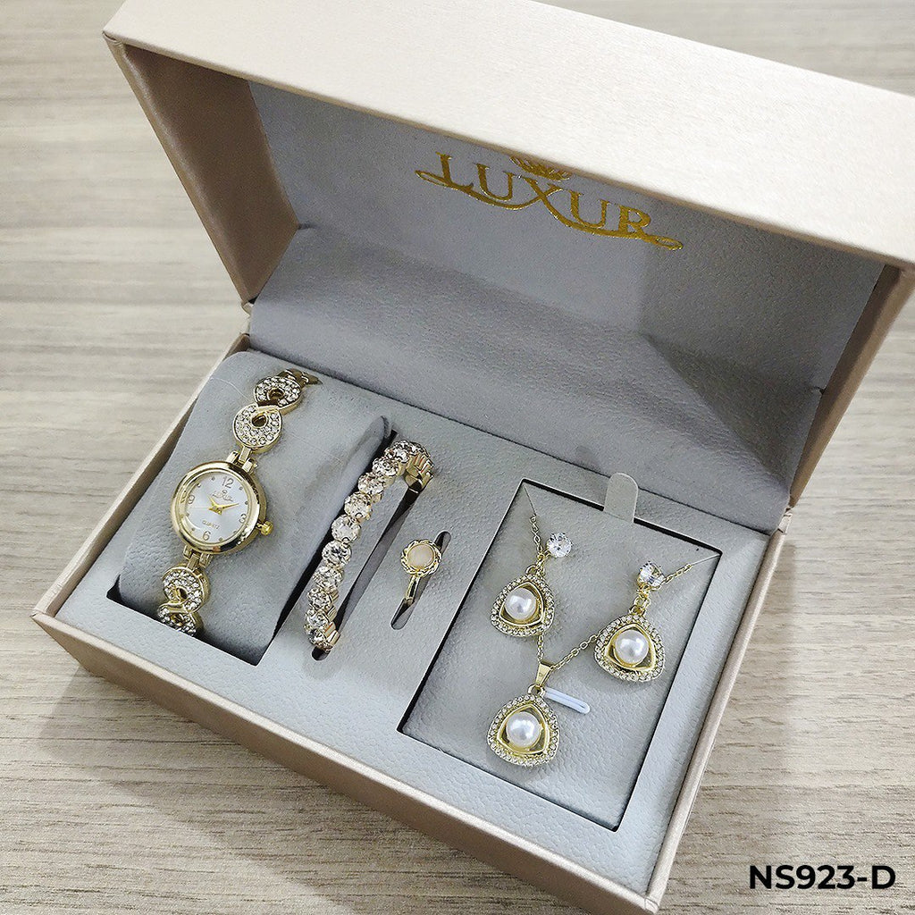 Un combo completo de reloj y accesorios que transforma cualquier outfit en algo elegante y chic. Ideal como regalo para: cumpleaños, aniversarios, citas o simplemente sorprenderla sin complicaciones.